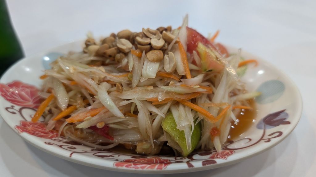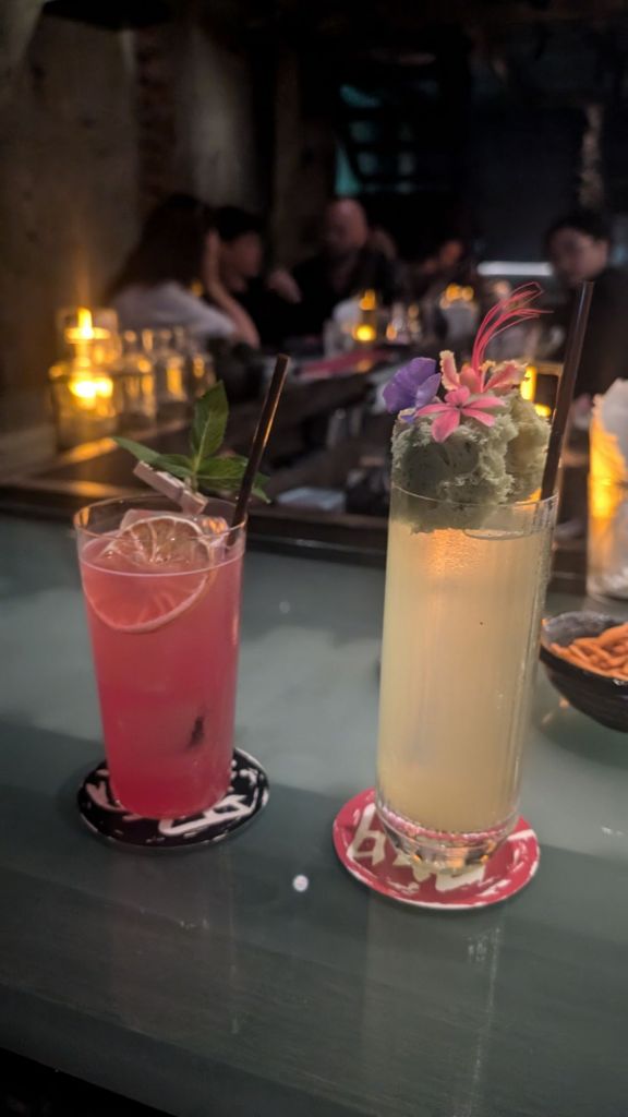 That night, (in the pouring rain!) we visited some of the nightlife in Yaowarat region, which is kind of famous for it’s “hidden bars”. We went to Ang Yi, and got cocktail. Dave got the special, where you used the Chinese traditional fortune telling stick shaker to shake out 3 descriptions of a cocktail. Dave got “rum”, “strong” and “fruity”. Which I guess is kind of right 🤣