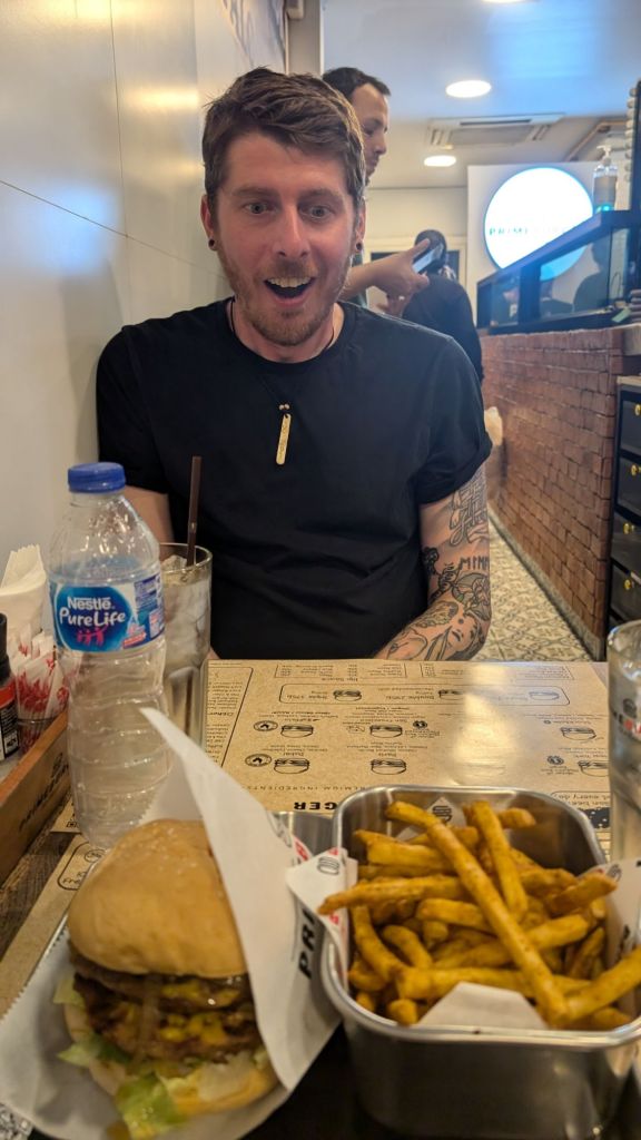 That evening we went out for a wander and a mini bar crawl down Ram Buttri Alley, and then Khaosan, which is mental, even now in low season. We stopped at prime burger for possibly the BEST EVER vegan beyond burger I’ve ever had 😋 omg it was so good!!! There are way more vegan options on Bangkok, especially in the touristy places.