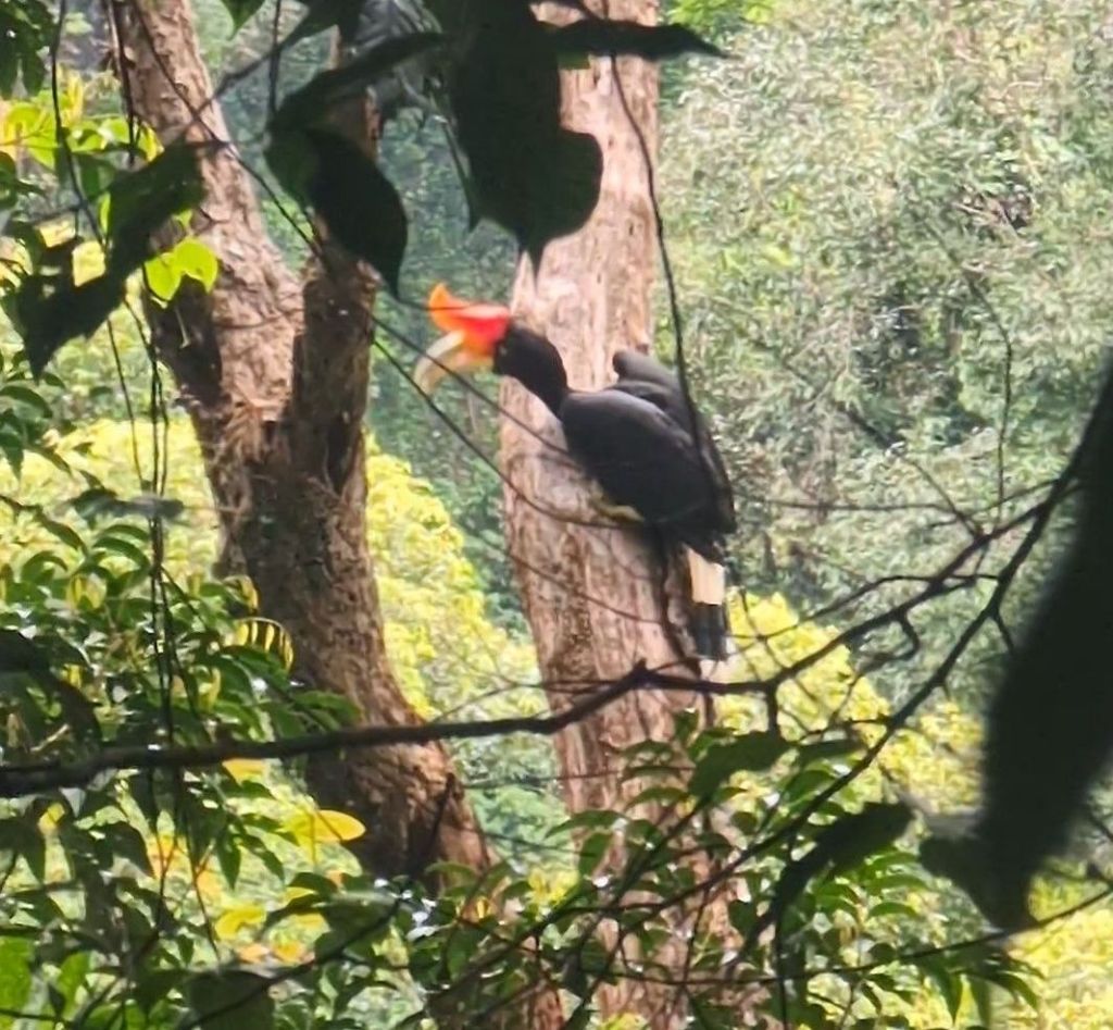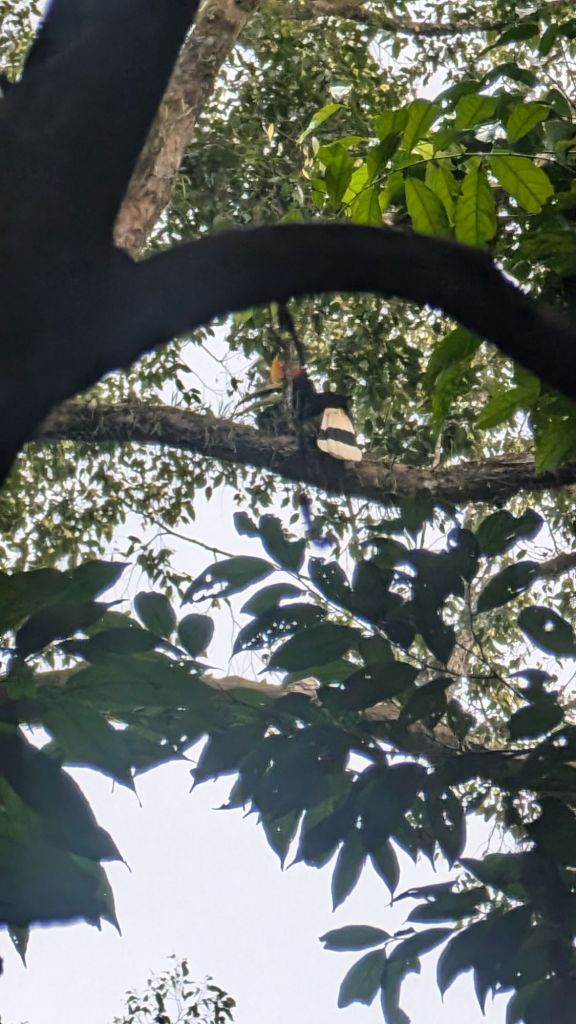 We thought our luck was done and started to head back out of the park, when we heard a hornbill flying through the trees – the sound it’s quite distinctive. We looked around and eventually spotted a pair high up in the trees, too far for a good pic, but then… One flew closer and we got a great view of a rhinoceros hornbill! One of my favourite birds!!