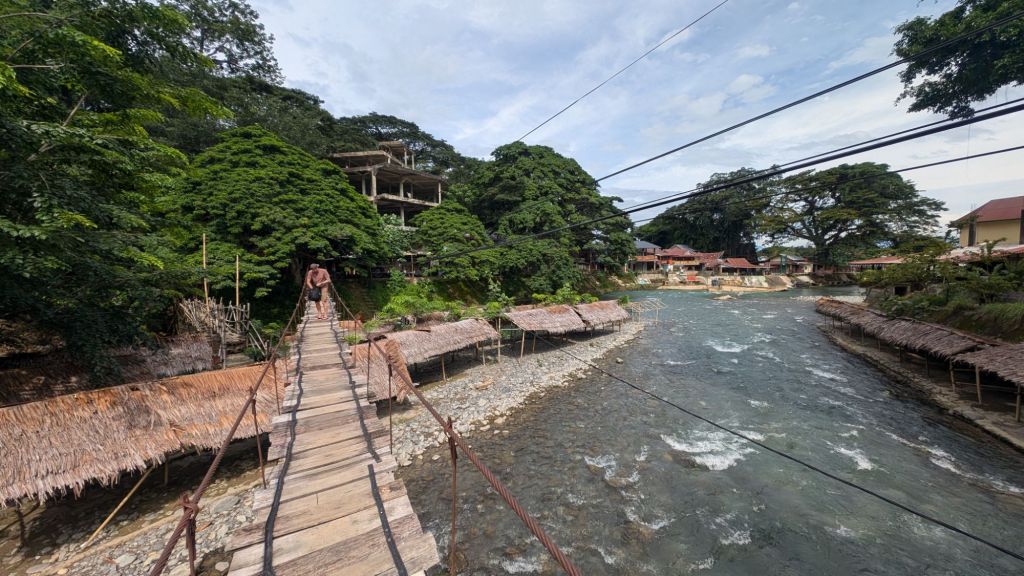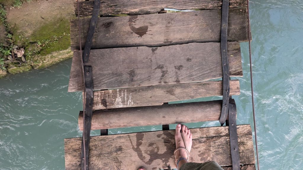 The last day we just chilled, the trek wasn’t that hard, but the humidity made it gruelling, and we were tired, likely dehydrated and aching. So we rested, did some much needed laundry, and went for a dip in the river, zig-zagging along all the bridges again.