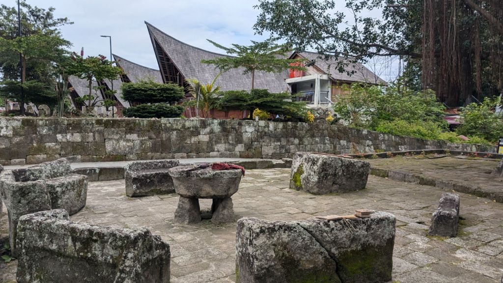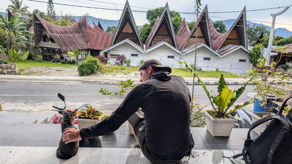 We stayed in Leokap Homestay, which was really nice, in a traditional style Batak house – similar to Berastagi, the people of Toba are also Batak, known as Toba Batak and also have a unique style house based on buffalo horns, but this style is like a very angular front, so super high roofs.