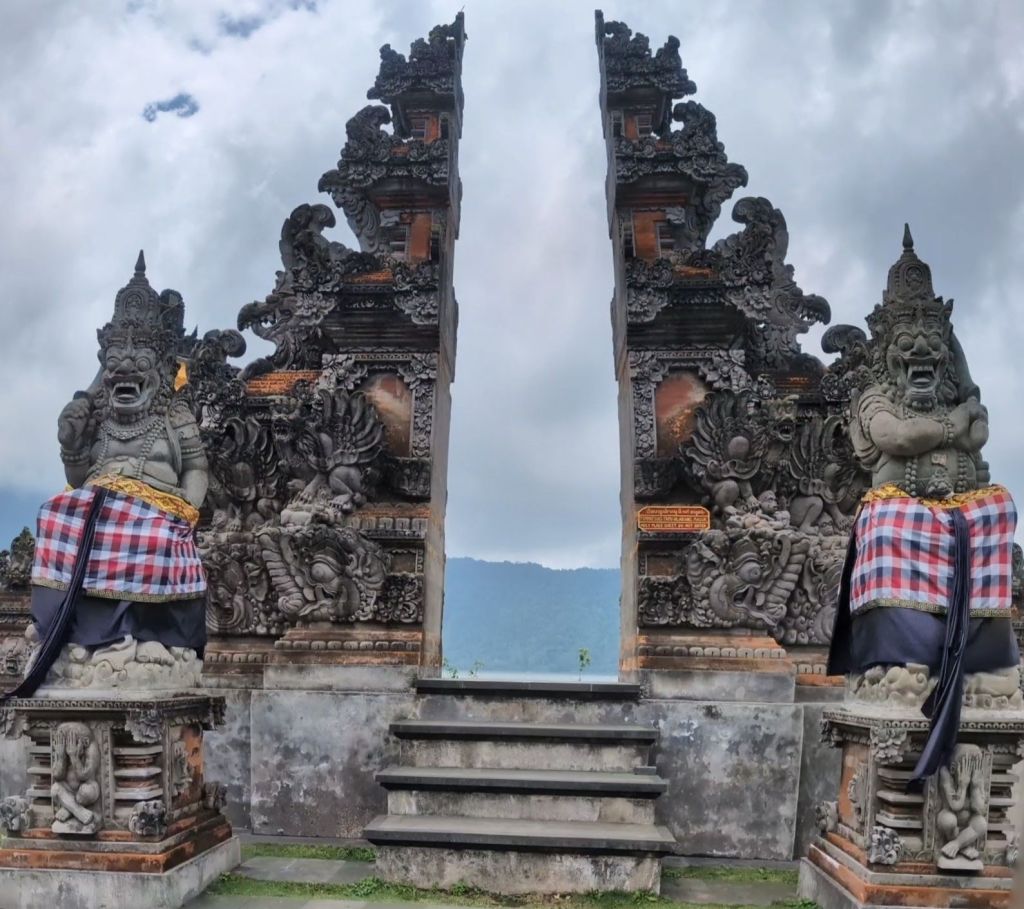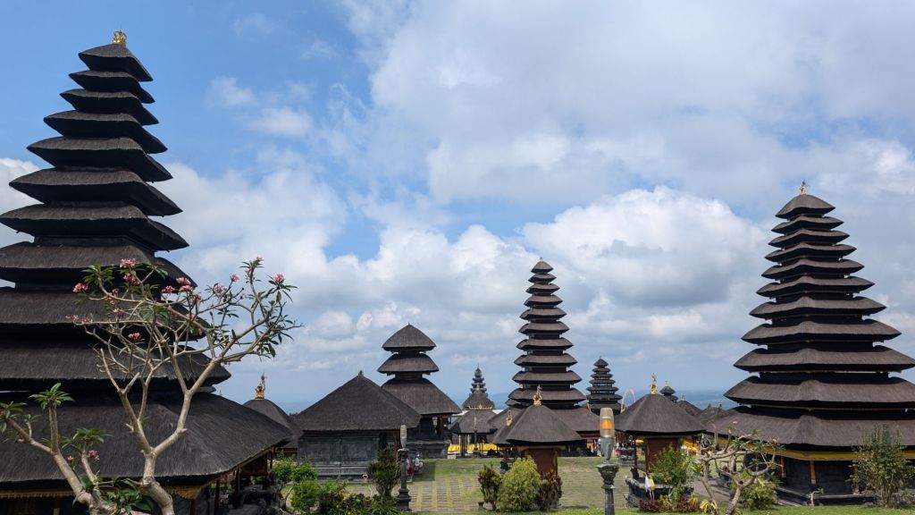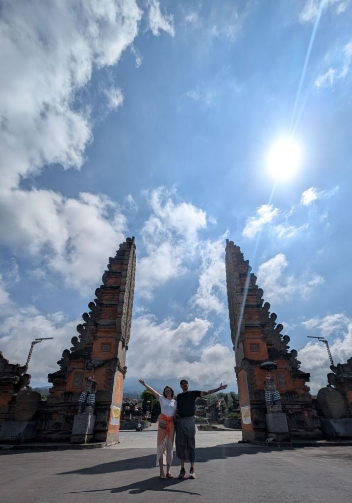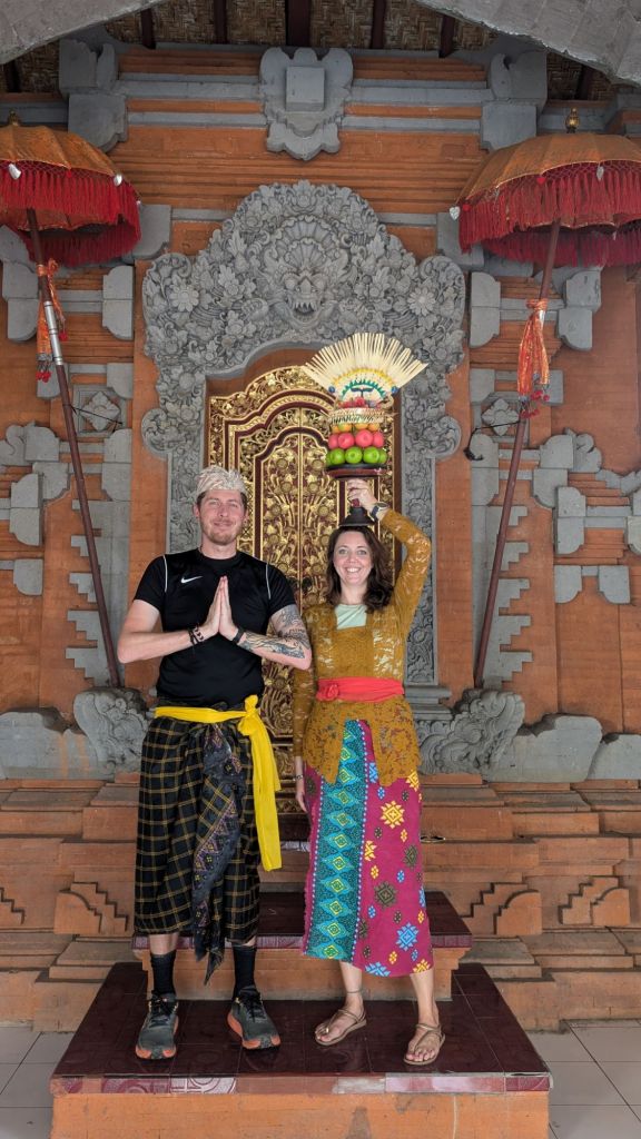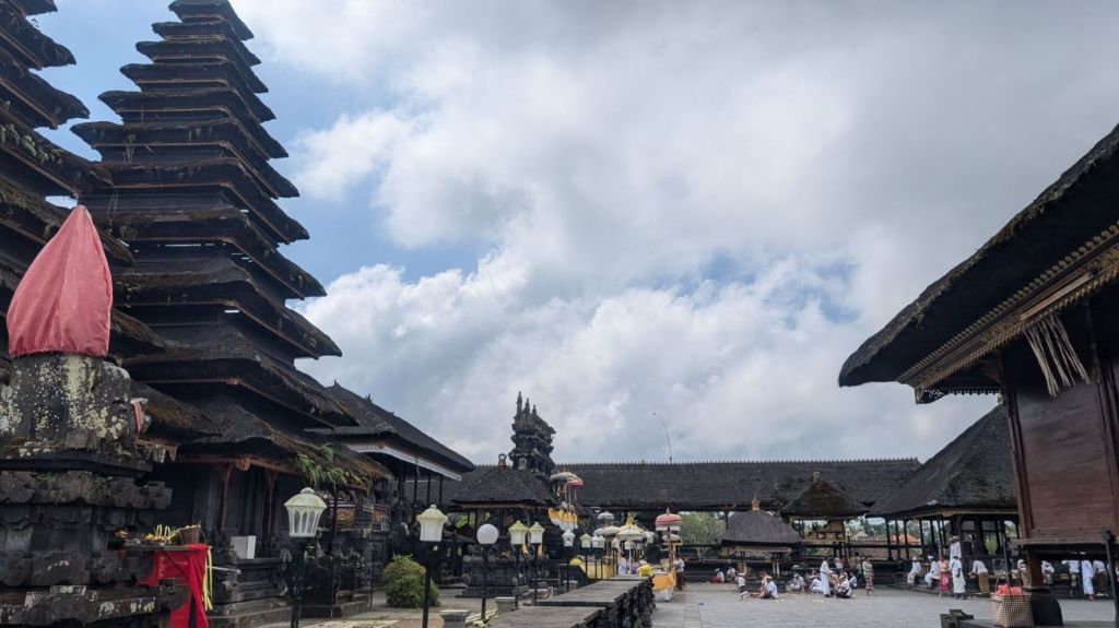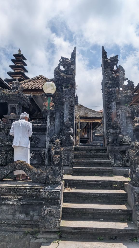 We got up early and headed up to Besakih temple. It would be my 3rd time here. It’s the most important temple in Bali, known as the mother temple, it’s on the slopes of Mount Agung, which is an active volcano, and there has been a temple here for 1300 years. It’s changed a lot since my first visit in 2014, and the experience we had this time was quite poor. We parked up, bought our entrance ticket (IDR 150,000 each) then got a little shuttle to the top with our assigned guide. When we hit the top people swarmed us immediately trying to get us to buy offerings, sarongs, drinks. One lady said to Dave, you “have” to take this offering or you can’t get in… I said that’s not true, I’d experienced this last time. Dave mentioned to our guide that locals trying to get money out of tourists at a holy site was shameful, and he almost immediately left us on our own, and told us to walk by ourselves. We think because he realised then that we would probably not be giving him a good tip. (In 2018 when I came here I did give our guide a tip and he laughed at me and asked for more…).