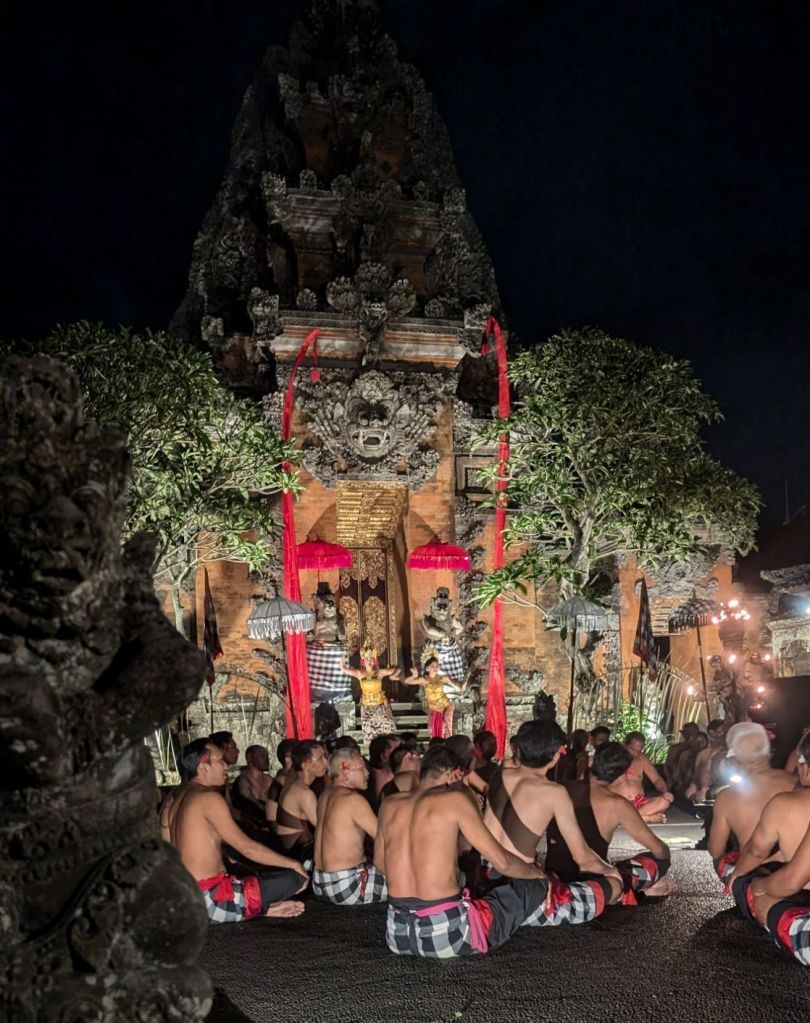 After a bit of shopping, food and a nap in the room, we headed back to the palace for the show. It was pretty cool actually. Called “the power of voice” it was a dance of a Hindu Epic, Ramayana. It was a large group of men chanting rhythmic “cak” sounds in unison, over which there is a dance about the story of Sita and Rama.