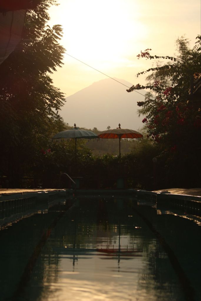 We spent the evening chilling in the pool and watching mount Agung through the clouds before returning the car the next day and getting a taxi to the airport for a flight to Flores.