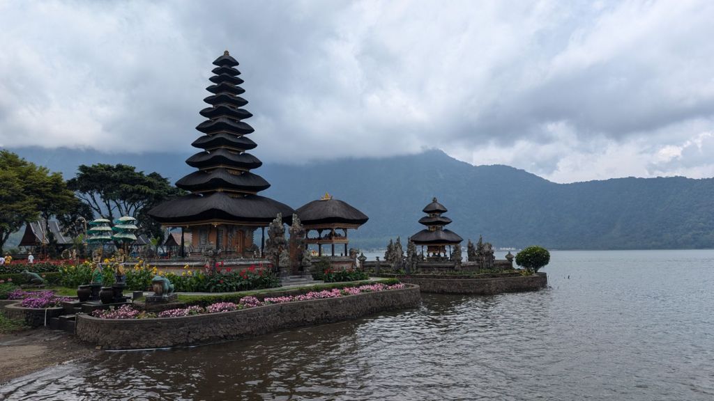 The road from Permuteran to Ubud is amazing, as it winds up and over the mountains around Munduk. I’d driven it before, and so I asked the driver to stop at a few places along the way, which we did at no extra cost. We stopped at the twin lakes viewpoint, and then Ulan Danu Beratan Temple.