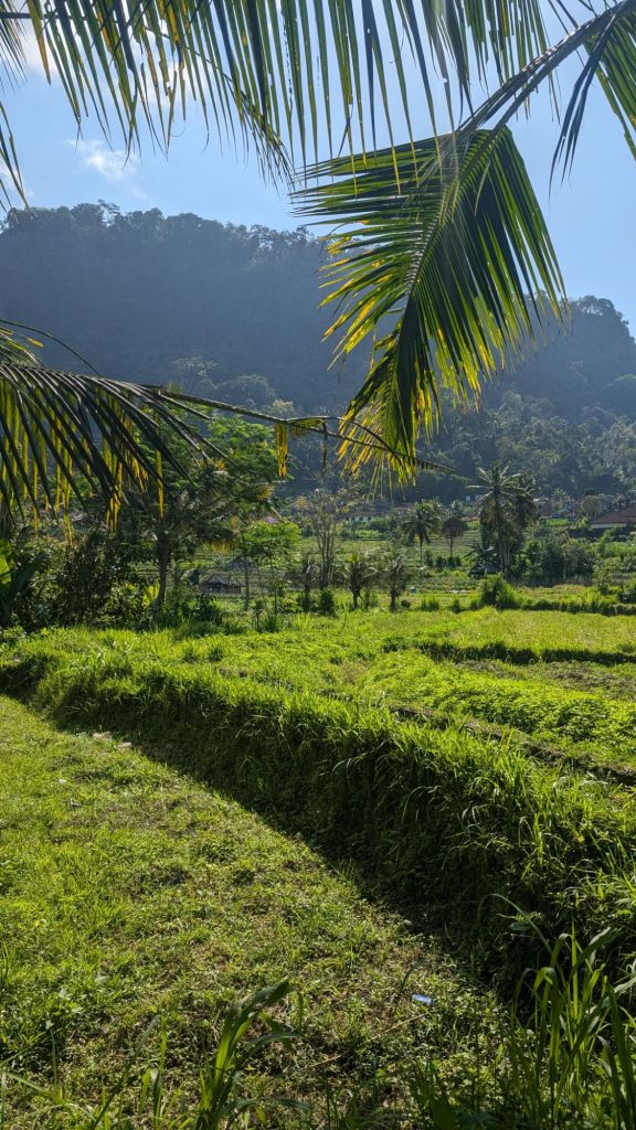 After a shower and packing up we headed out again, and after enjoying the drive through Sidemen so much the previous day, we headed back there for the night. Taking our time and enjoying the roads. We stopped at the vegan organic farm again for lunch, and then finally made it to our accommodation for the night. We booked a nicer hotel this time, with an infinity pool looking out towards Agung, but last minute on booking.com (and off season rates etc) it was only £25 a night (£5 over budget) but we thought it was worth a treat as we are nearing the end of our trip…