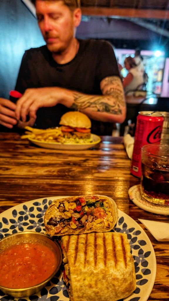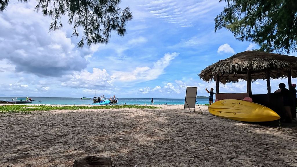 However, during the months of May to October, much of the national park and marine park closes to tourists because of the monsoon, and to allow the region to recover annually from the effects of tourism. We did know this, but we thought that fewer tourists would be nice after Koh Tao, and our experience of the Thai monsoon so far was not bad at all, we had a few spots of rain here and there, but never more than an hour, and always sunny before and after. So we took a punt, and found a mega deal on accommodation here too, as the place we booked – Sweed Dreams, was only £16 a night, and was a lovely room with AC and hot water. (But yeah the downside was that it was a cannabis shop 😂, but luckily it didn’t affect us, and the entrance to the rooms was separate from the shop).