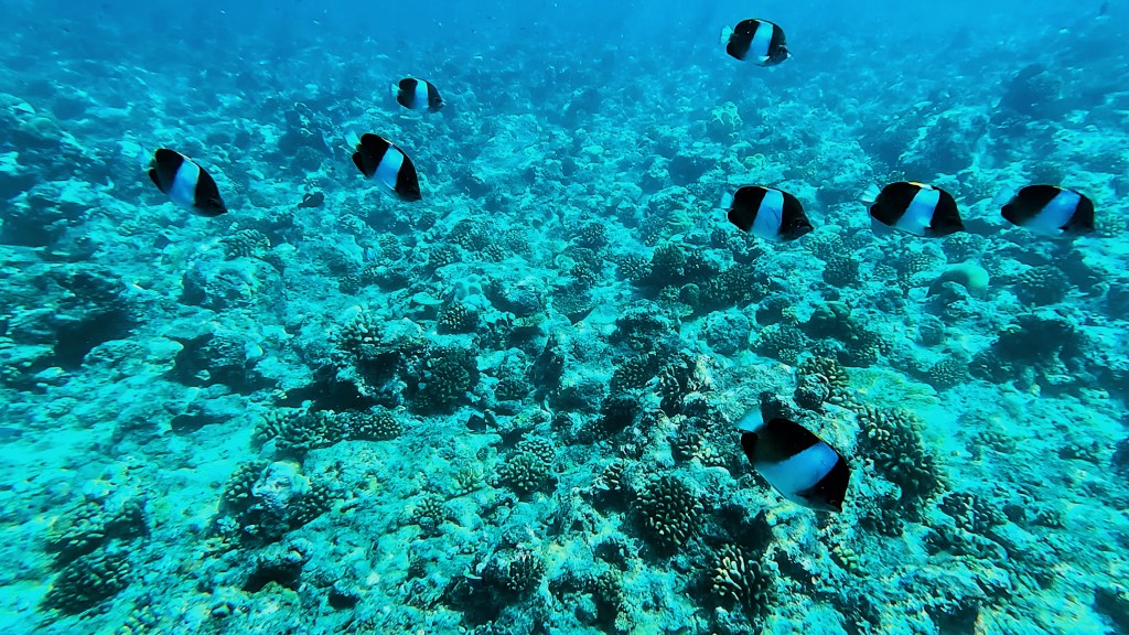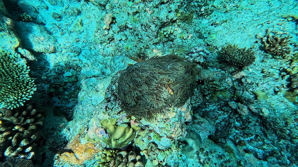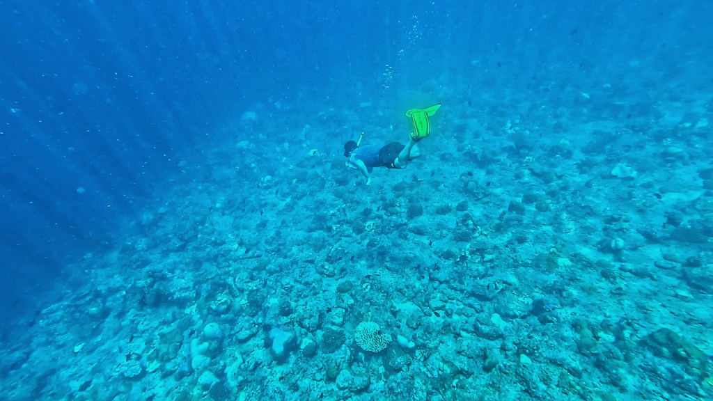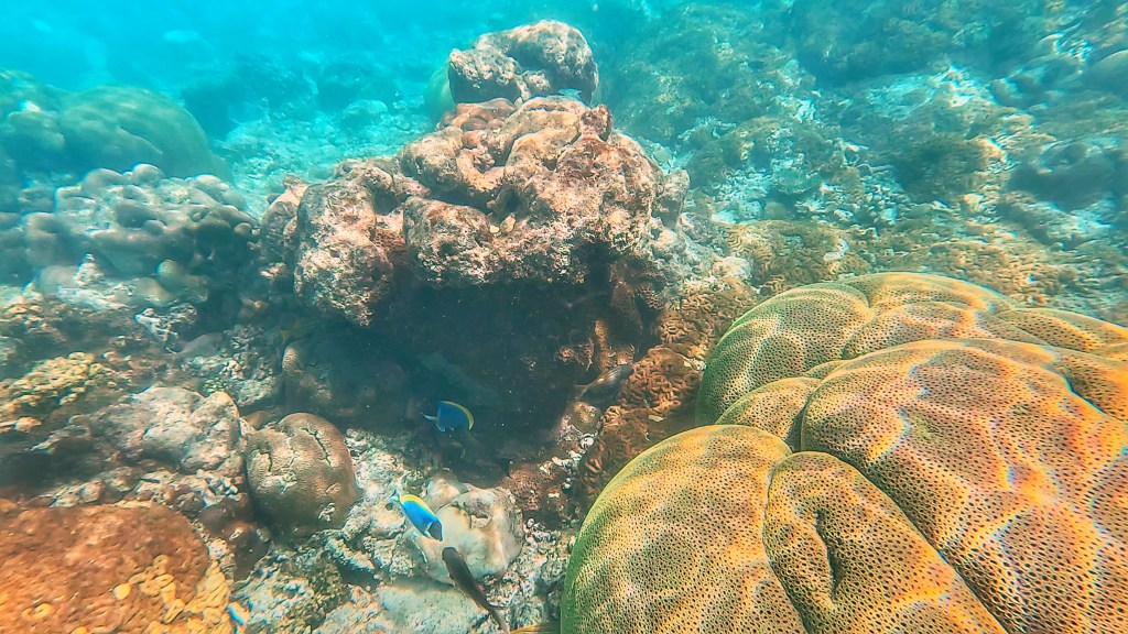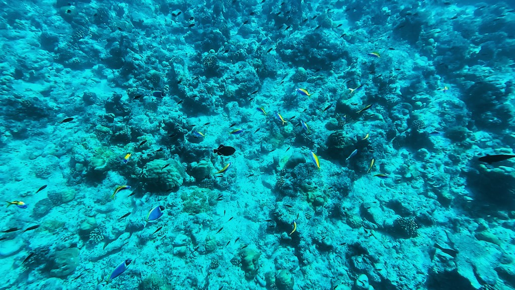 We saw a turtle, who, just as we passed it, decided to come up for air right in-between us. I almost ran into it with the current. It stayed on the surface for a long time just chilling with us peacefully, until someone on our boat spotted it and alerted the others in our group. As the group splashed over to us to catch a glimpse, the turtle scarpered quickly into the depths. But we’d had some nice time with it, so it wasn’t too bad. Poor thing.