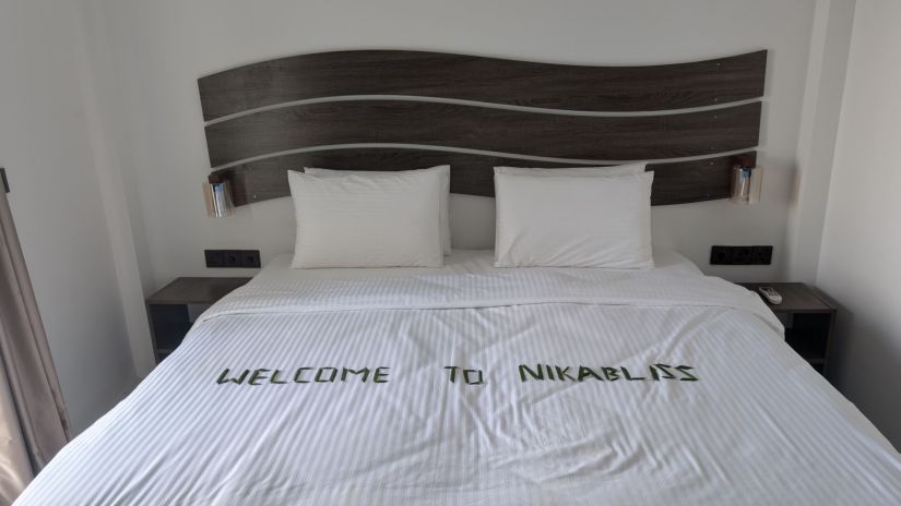 Once again, on arrival in Dhigurah we were picked up by our hotel. We’d booked Nikabliss guesthouse, which was very close to the jetty, but with heavy bags and in the midday sun, we welcomed the lift. The hotel was lovely. I was worried that it was a little far from the main bikini beach, but we came to learn that EVERYTHING on Dhigurah is quite far from bikini beach! Instead, this hotel was new, clean, and had the best 3 guys managing it, who made us feel incredibly welcomed to the island and part of the family.