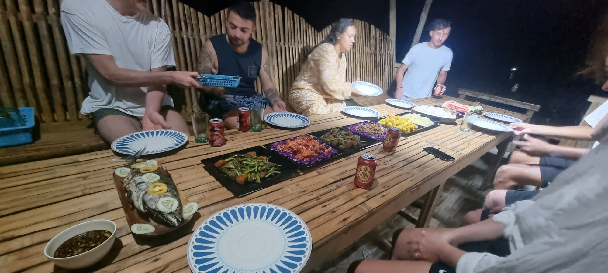 After an incredible day, we eventually reached our campsite for the night on an island with no running water or electricity. The only buildings on the island were our little huts. We had a bucket for a shower, and a small generator which they turned on to cook tea, which again, was amazing.