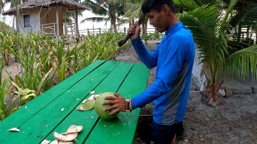 The camp here was slightly more glamorous, as there were actual running showers and flushing toilets, plus we were in the middle of 2 beaches, separated by only about 80m or so. We had some fresh coconuts and another delicious meal, and then hung out drinking and chatting with the Keelooma guys all night.