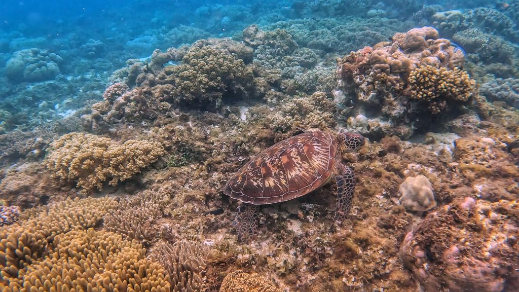 But when I started to feel a little better, I also booked a day trip to Apo Island, which is closer to Dumaguete, but the resort arranges a day trip here too. It’s supposed to be the best place in the Philippines to see turtles and they were not wrong… When we arrived at the island we moored up and walked across it to the snorkeling point. I must have seen about 50 turtles!