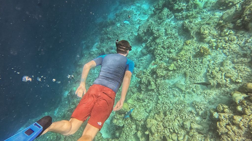 The next day we did plan to just sort out clothes and our bags, but we’d basically managed to do all that on the first evening, so we decided to try and book a final snorkelling trip in the local region. We didn’t have high expectations, but we did have some local currency to spend. We managed to book a 3-point snorkelling tour with Hulhumale Water Sports (on the beach) for just $45 each, which used up the rest of our dollars. And this was the biggest surprise of them all… As it was probably the best value trip we went on, the snorkelling was great!