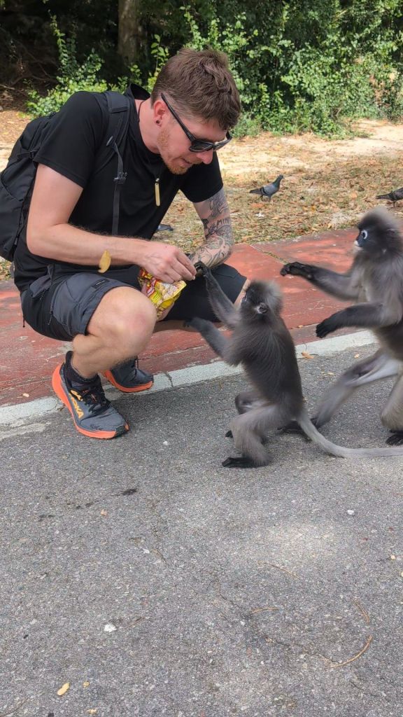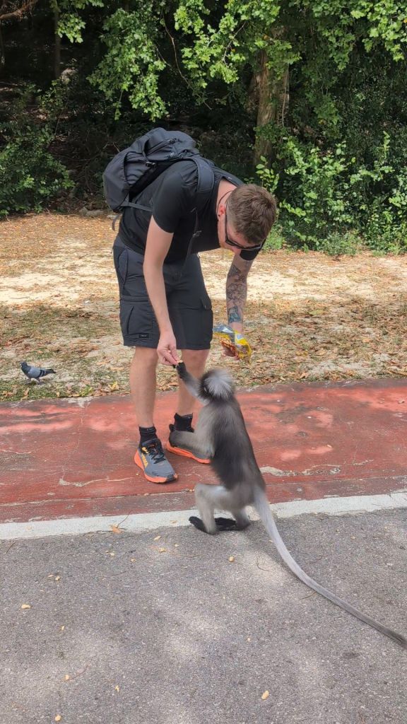 We got a motorbike for the day and headed towards the langurs, not before stopping off to grab some monkey nuts (raw peanuts in shells) – which Dave had read online was their favourite and a bit better nutrition for them.
