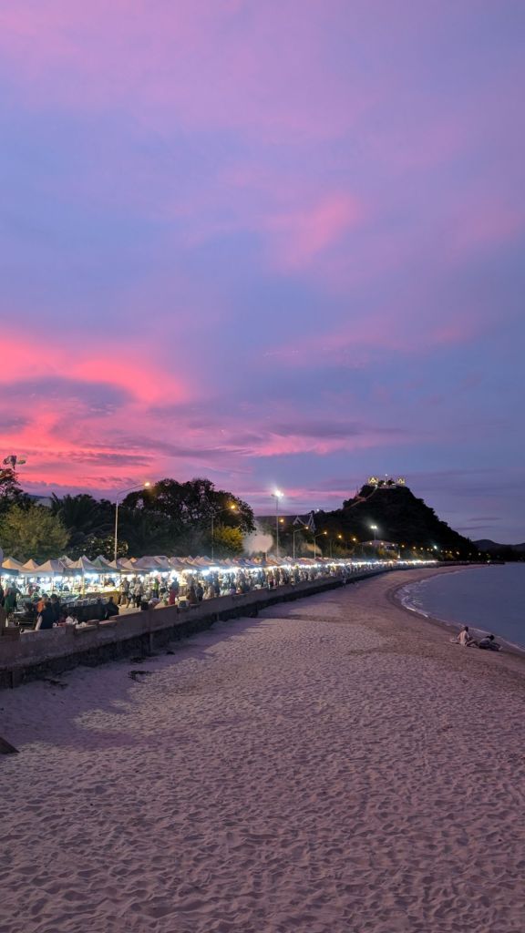 We headed back to Prachuap beach and had a quick shower and change before heading to the night market.