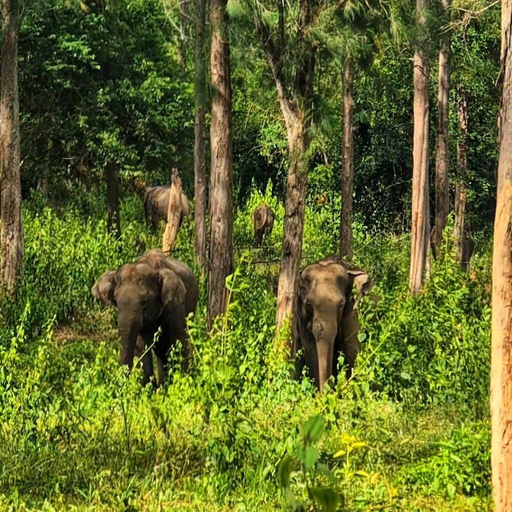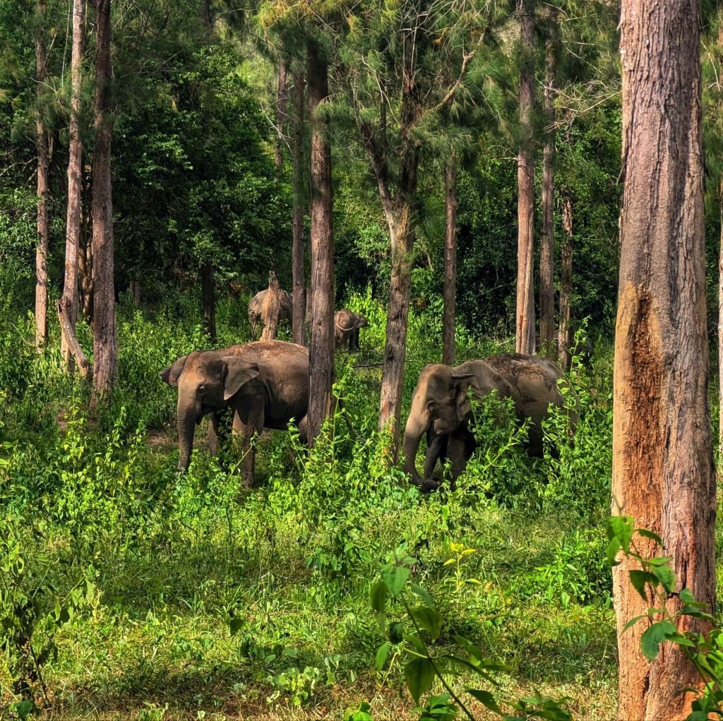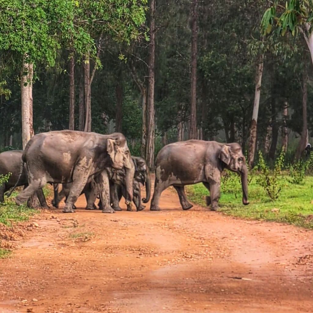 We did find the elephants again, I think it was the same family, and they were waiting to cross the road this time, so we sat under our umbrellas and watched them again.