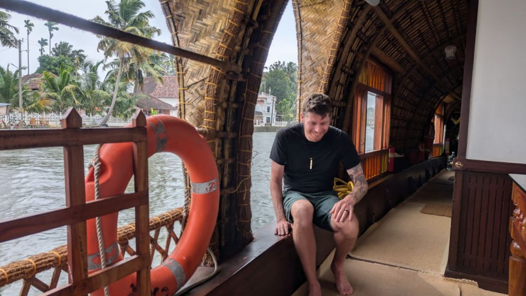 As we were still acclimatising to being in India, we opted to get a taxi down to Alleppey which cost us about £20 on Uber. We were told to meet them at the fire station, and eventually someone turned up on a moped who let the way along the canals to the boat. It was stunning.