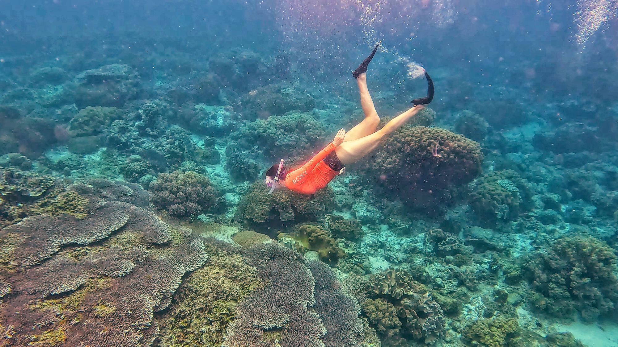 If you’re serious about spending hours underwater (which you should be!), always bring your own high-quality mask. Having one that actually fits and doesn’t leak is a game-changer. My recommended mask is this one from Cressi*, with a matching Snorkel too*, as I find the adult ones uncomfortably large on full-day snorkel trips!