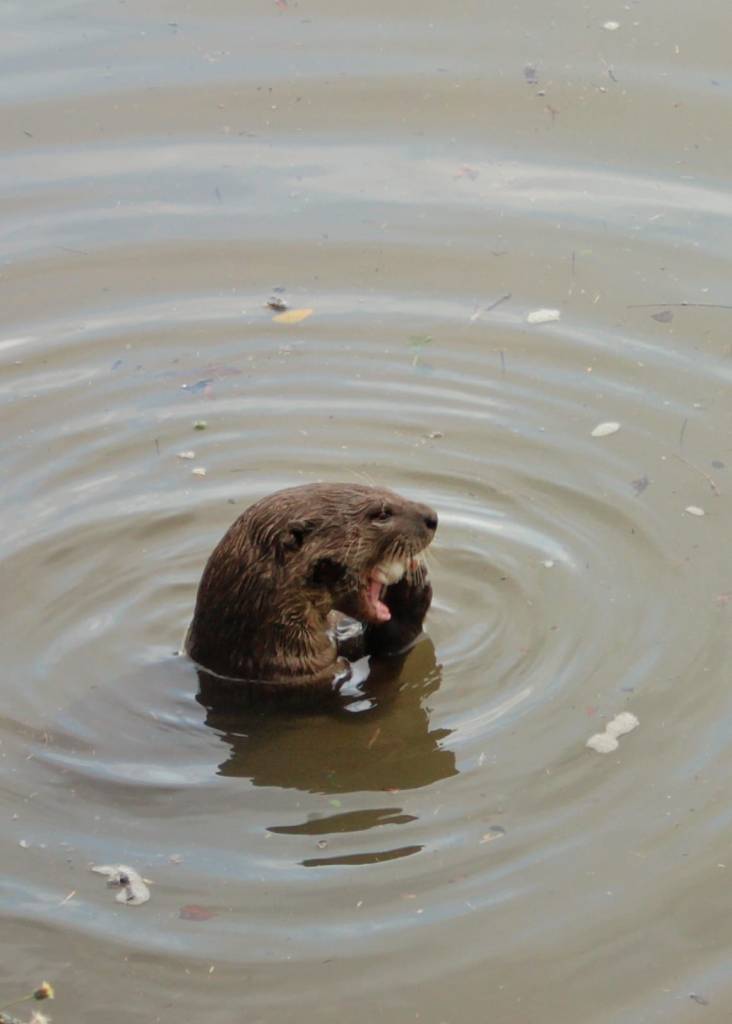 The best time to see the otters is very early in the morning at dawn. Dave got these pictures at about 7:30 – 8am, before the marina is crowded.