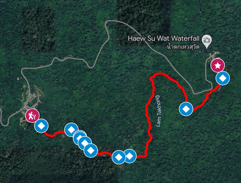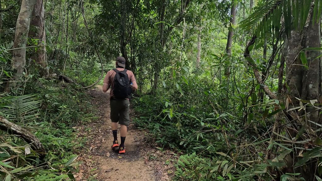 We continued on past the visitors centre to walk trail number 2, which I’d read was supposed to be good for hornbills especially. We were relatively well prepared, but we did only have our hokas, and the trail was quite muddy. Also the trail is one way, you walk from the road around to 2 waterfalls then back to the road, but a lot further down. The walk on the trail is 2 hours and then back, or along the road for another 2 hours. So we just walked along the trail for about an hour then turned around and came back.