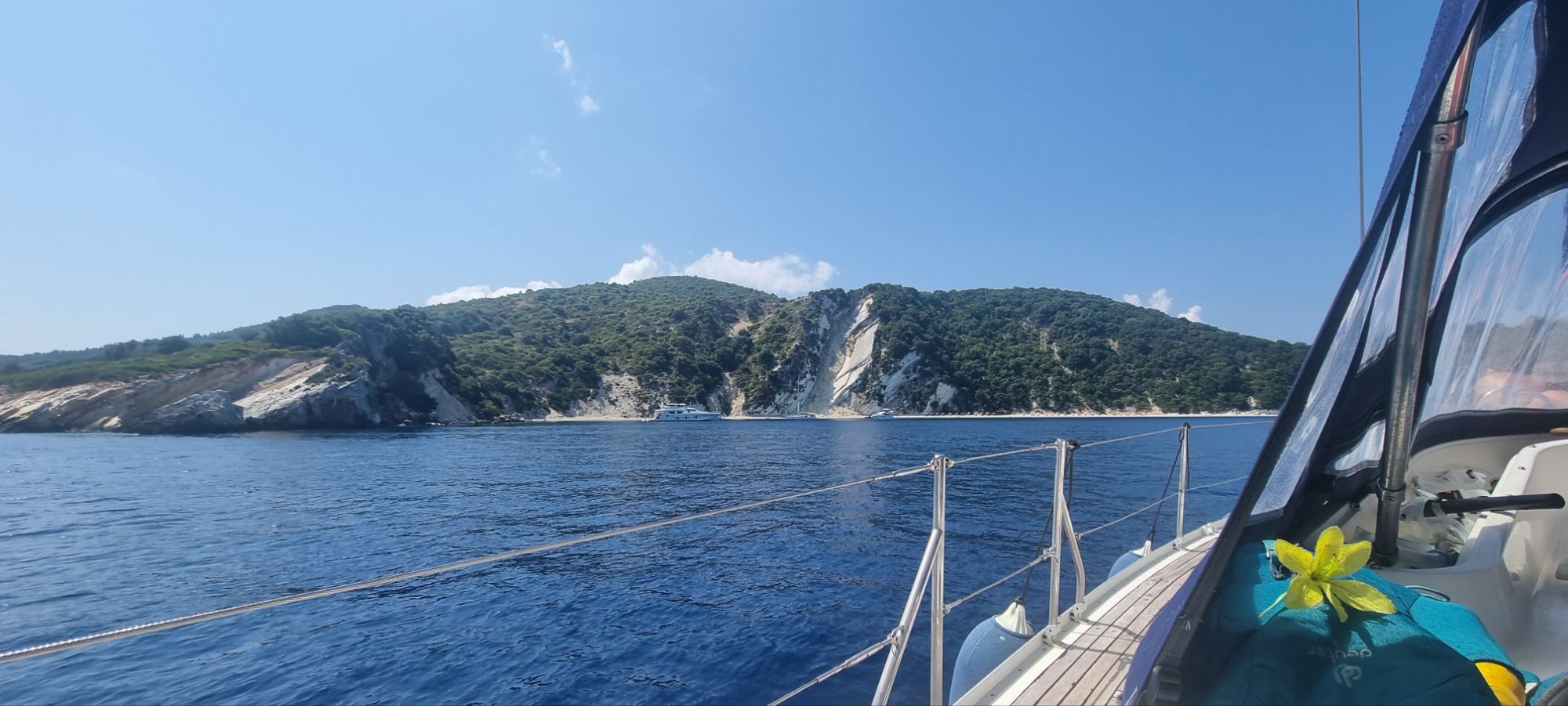 The boating was amazing, but low power, and not quite enough to cross the narrow straight from Kefalonia to Ithaca – which I’d heard was stunning. So that evening I booked onto a sailing boat trip, a local company with an 8-seater sailer due to go out and visit some of bays on Ithaca.