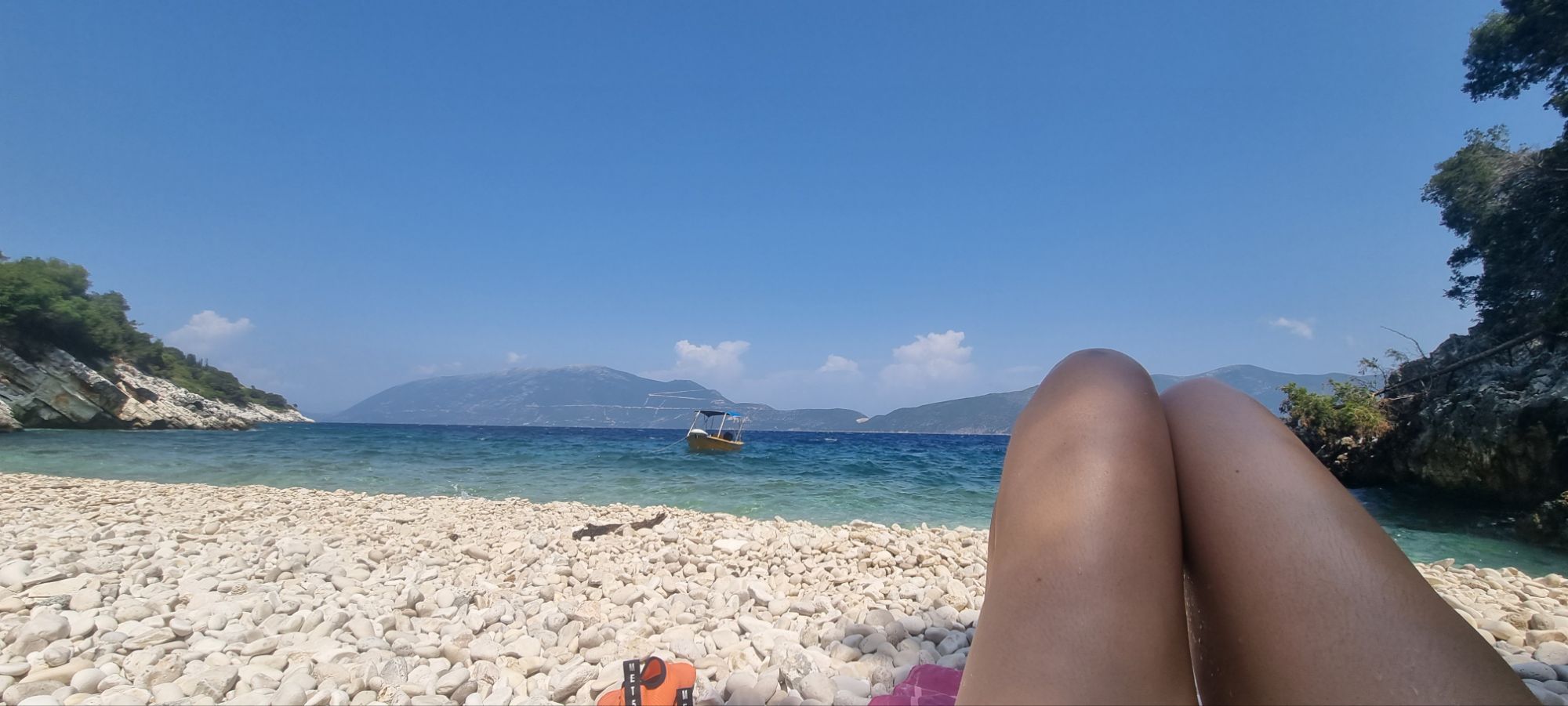 I drove out on a very scenic road, which took my past many of the famous beautiful sites of the island, including Myrtos Beach (which looked nice from above but was HAMMERED) and Asos, which also looked amazing from the view point. But I continued North, and after a quick lunch pit stop at Fiskardo, I got to Dafnoudi beach. It was a short walk from the road along a little woodland area. The beach was small, and a little busy, but not too bad.