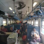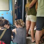 We got a seat on the station, we were there super early, so thought our chances of a seat might be good… Nope. The train arrived and we boarded and spent about the first 20 minutes walking up and down the tight train aisles trying to find a space (even just to stand) for both us and our bags. The train was JAMMED! We eventually found a bit of space to stand in the cafe carriage next to a window. The 2nd class was actually far worse than 3rd class!