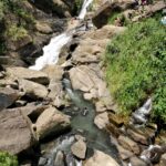 The road to Diyaluma falls was set to take us past Ravana falls, so we thought we’d stop for a quick look and see… Actually the falls were beautiful. I think we initially stopped just as a bus load of people had stopped to take photos, there must have been about 50 people on the bridge snapping away and taking selfies. Off the road and on to the rocks there were probably about 20 people chilling and then over the water onto the other side, maybe only 6. In the water… well at one point it was just Pete. So actually it turned out not to be that busy. We thought the water might be packed with people jostling for position. But it seems not that many really wanted to take the plunge. Most just wanted a selfie… pretty sad if you ask me 🙁