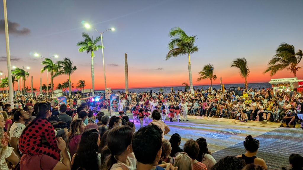 Then we headed towards the coast to the boardwalk area of the Malecon to watch the sunset, but as we headed there we could see a huge crowd. There was a parade going on down the road parallel to the Malecon, it was a massive festival. When we first arrived it was all children (with adult supervision) and mini floats being pushed by the adults, each one a different theme with all the kids dressed up and dancing. But as we stayed and watched the parade, and then the sunset, and the day turned into night, the parade turned to adults and had huge floats coming down the road with people dancing and music playing. After we got back to the room we learned it was a festival for LGBTQ+, so that was pretty cool!!