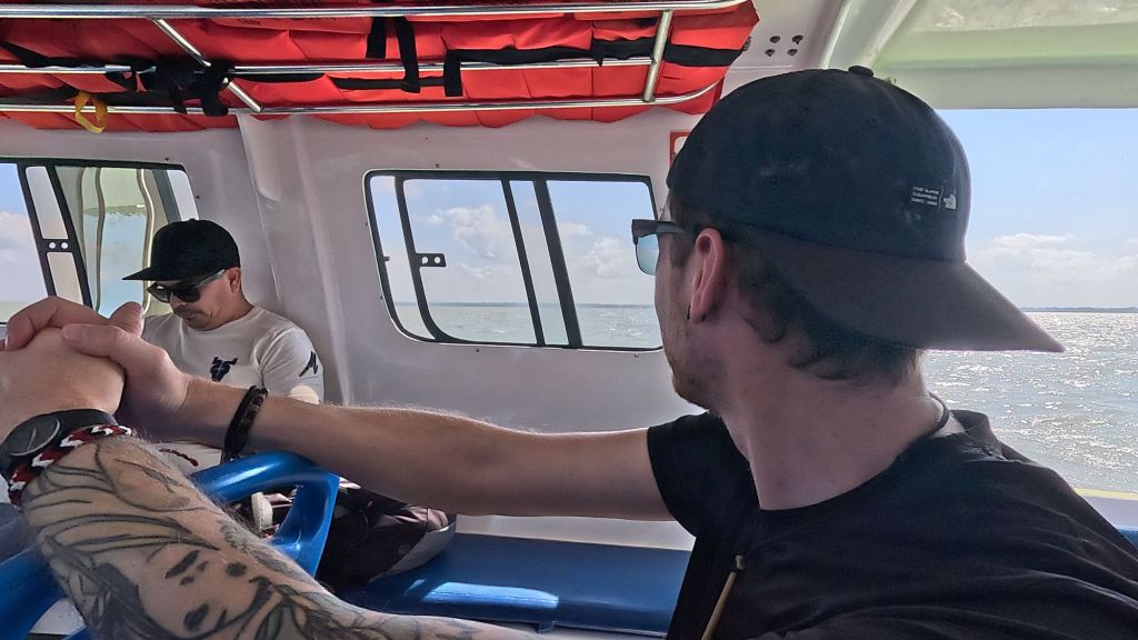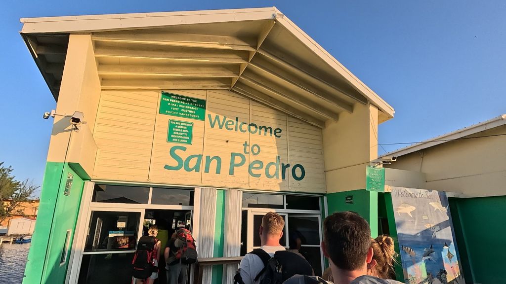 It took 2 hours to get to the first stop of San Pedro Town on Ambergris Caye, where we had to get off the boat and go through immigration. Many of the people were also getting off here too. After breezing through immigration and laughing with the border control – we’d ticked “yes” to the question about “are you bringing in food”, because it was true when we filled out the form, but by the time we got to Belize, we’d eaten all our snacks and actually had none left 🤣