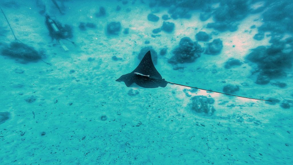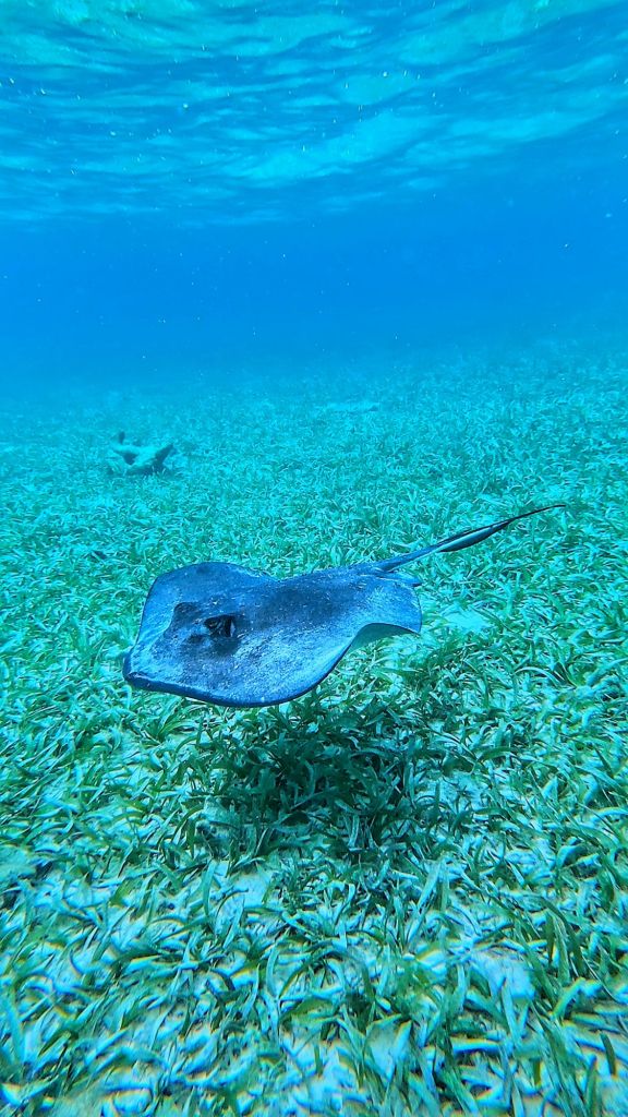 The time seemed to fly at Hol Chan, and soon we were back on the boat moving to our lunch spot. After eating we jumped in the water and there was loads to see here as well. Loads of Southern rays again, and also more eagle rays, which are so cool, flying through the water with their super long tails!