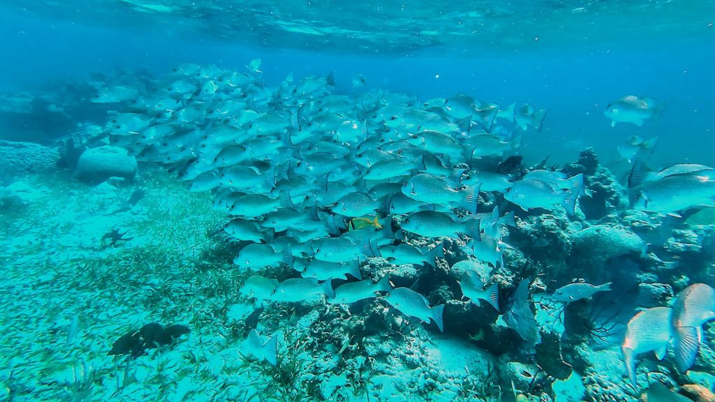 At coral gardens, we did indeed see a turtle, and a couple of nurse sharks too! Then we headed over to Hol Chan – definitely the highlight of the whole trip. The marine reserve is highly regulated and you’re only allowed 45 minutes there. It was super busy and a streamlined operation really, in and out in a bit of a circuit through the region, but you could see why. There were so many schools of massive fish, all different types of jacks, barracudas, snappers and tonnes of eagle rays too.