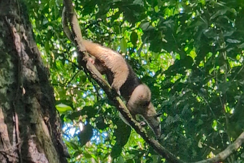 It’s a lowland rainforest, think hot steamy jungle, with brown muddy rivers, crocodiles, sloths, anteaters, countless birds and even pumas and jaguars….