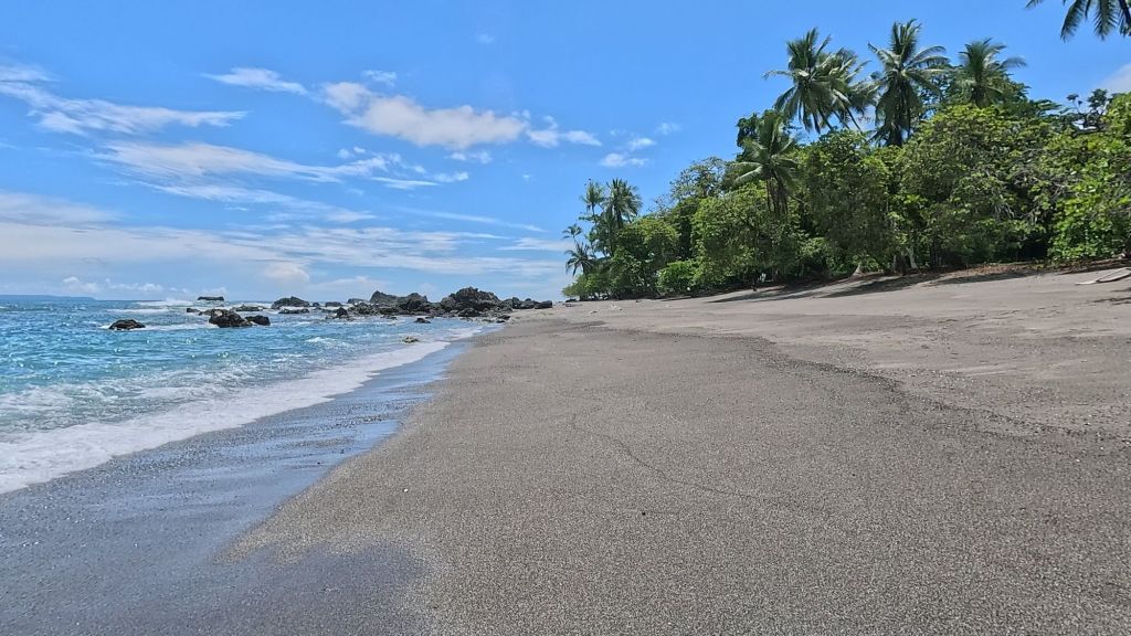 After the break we tried the water again and it was a bit better but barely… So we decided to call it a day. The guide and boat captain offered to take us to Playa Josecito instead, apparently the most beautiful beach in the region, so we all agreed and drove over to there instead. We enjoyed playing in the calm water and watching the macaws in the trees. It was a lovely beach, then we headed back around 2pm and landed back at Drake just before the afternoon rains started. Perfect timing!