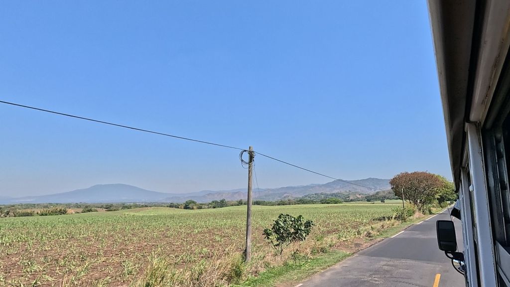To get from Santa Ana to the more sleepy surf town of El Zonte (just a bit further along the coast from El Tunco), we got the 209 bus to Salcoaltitan. We didn’t know the bus timetable, but heard they might be every hour, so headed to the station about 12, and didn’t have to wait long before we set off about 12:30. The bus was $0.71 and super scenic, as it went past Santa Ana Volcano on a similar route to the 248 bus.