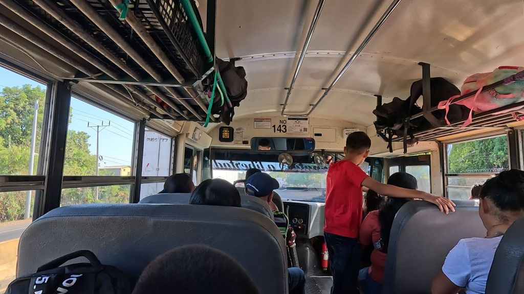 We took public transport to El Zonte. The 209 goes every hour from La Vencedora bus station and took about 2 hours for $0.71, stopping at the main bus terminal in Salcoaltitan. The 12:30pm bus gets you there right in time to catch the 3:30pm 287 bus from Salcoaltitan to La Libertad, stopping along the road at El Zonte. This bus cost $1.25 (the sign said $1.13 but we didn’t get any change from $1.25 😂) and took 2 hours. We heard there are only 2 buses a day, the other is at 5:30am, so this is the only one possible to catch really. And definitely get there early, like 3pm ideally, as there was a queue and the bus was packed with people standing as well.