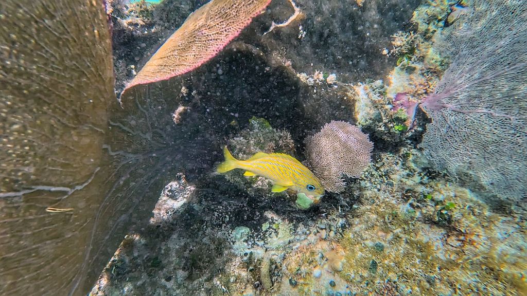 That was definitely accurate, and when we arrived we were basically the only ones here, but it did fill up as the day continued. The snorkeling here was good, probably better than the previous day in reality, especially as we had the freedom to come and go in the water when we wanted and not be forced to stay with a. Huge group. But we didn’t see any rays or starfish. Just some MONSTER fish, some where really big. There were lots of soft corals here too which was cool.