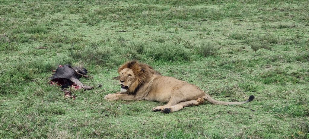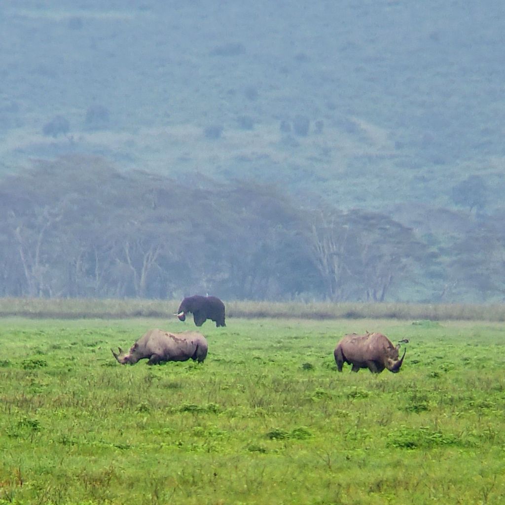 Ngorogoro is an old volcano caldera with quite steep slopes around it. As such, it’s a bit of a unique habitat. You get all the animals that you see in the Savannah here, except giraffes apparently, as they can’t climb up and down the crater walls! There’s also marshland area good for birds, and it’s one of the best places to see Rhinos – which was the only one of the big 5 ft which we hadn’t seen yet.