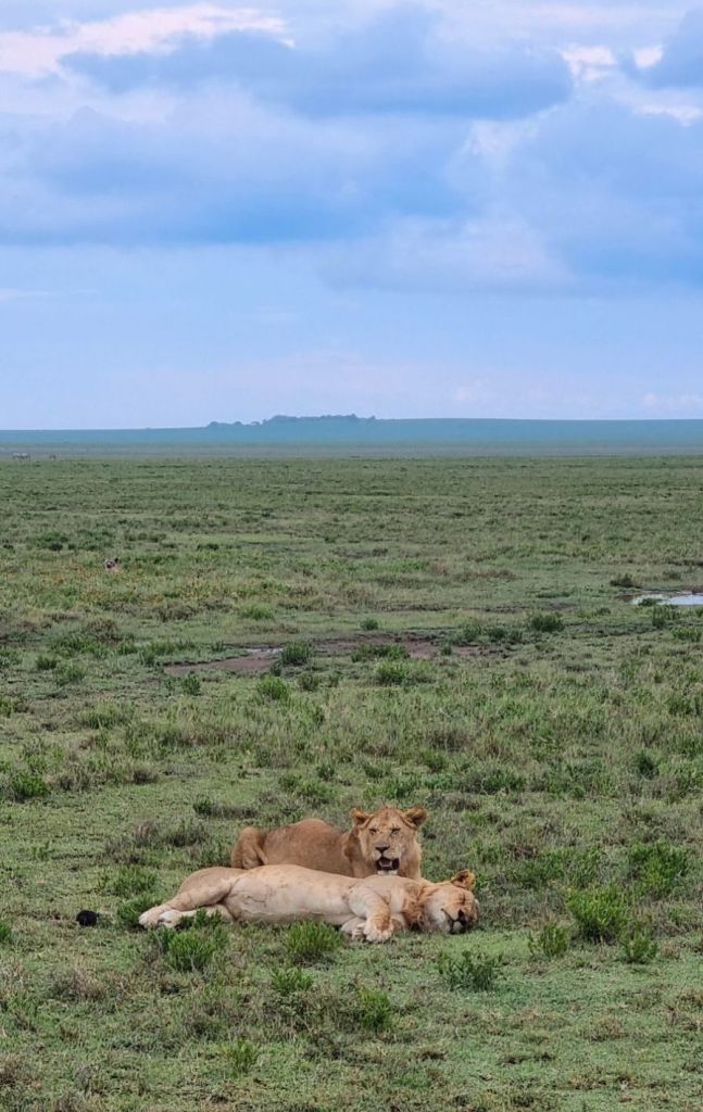 Then we saw more lions just chilling, one of which had a satellite collar on. These were females. After being on the road for a long time without many stops, I really needed the loo, so asked the guy if we could stop. When we saw these lions, he said I could go for a “bush wee”, he reversed away from the lions, I jumped out and squatted behind the jeep, no more than 50m from the lions, then I jumped back in and we moved closer again haha, madness!