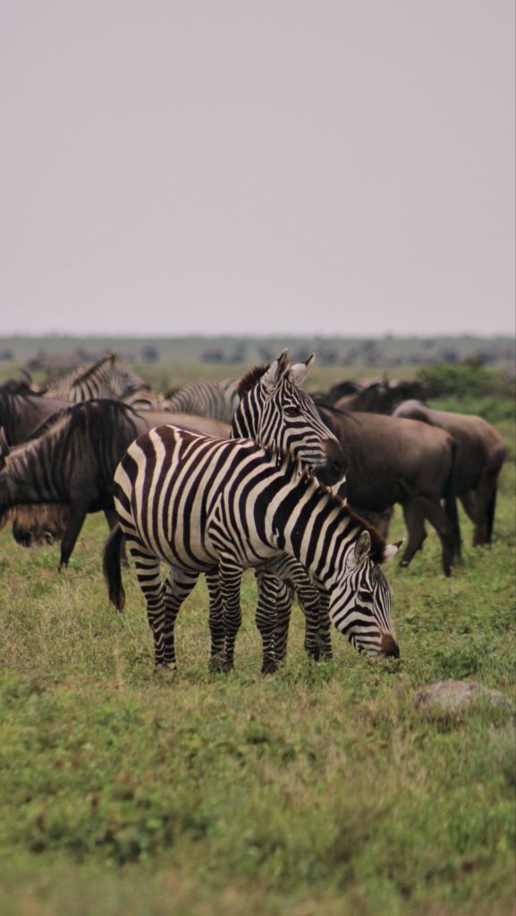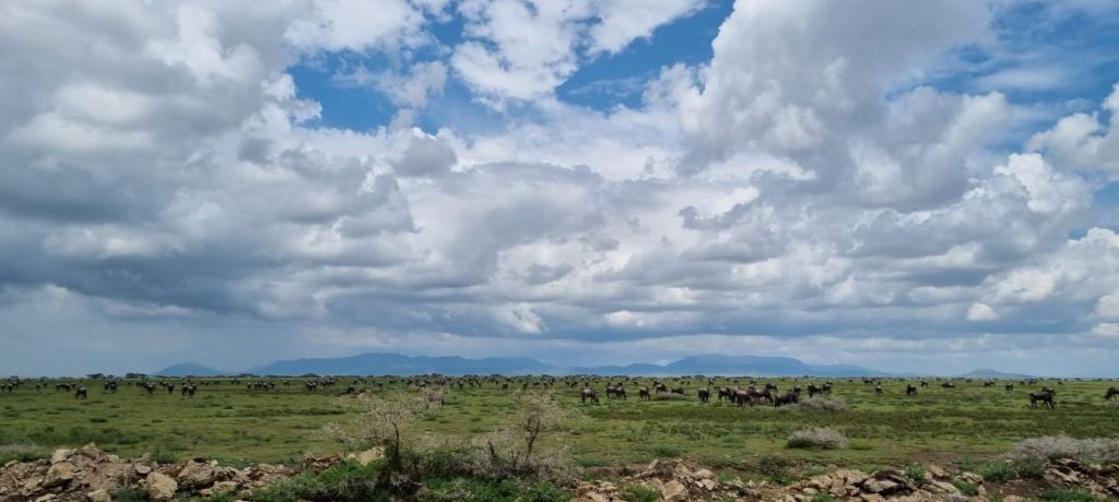 As we neared the entrance to Serengeti, we exited the mountains and hills, and all we could see from this point was just endless plains of Savannah. Which is actually what Serengeti means haha, “endless plains”. It really was, just flat and grass for as far as you could see. We started seeing the mega herds of wildebeest and zebra for which this area is famous. It was amazing. wildebeest for as far as you could see… They say the wildebeest has the nose and the zebra the brain, they travel together on this great migration around Kenya and Tanzania. The wildebeest can apparently smell the rains and will follow their nose, so the zebra follow the wildebeest. But they have better memories, so they remember the dangers along the way, like lions and crocodiles etc, and they alert the wildebeest. It really is a good partnership.