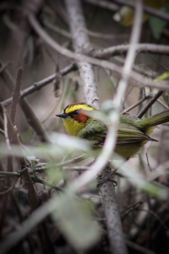 They were foraging and chasing insects in a mixed group, so there were also golden browed, yellow rumped, crescent chested, Wilson’s and Tennessee Warblers too. As well as a few redstarts, with their fanned tails. They were all so cute and pretty, moving together in a mixed flock through the bushes.