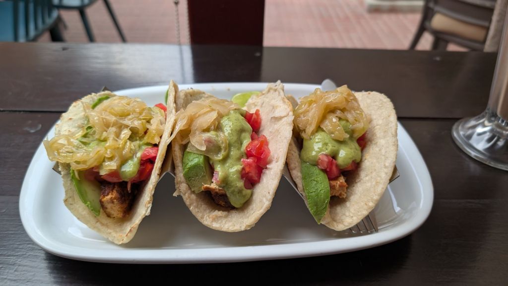 We grabbed a little vegan empanada/pancake from a local Taiwanese street food stall, which was absolutely delicious! Then had a bit of a nap, before heading out to a place called Xela Green for tea.