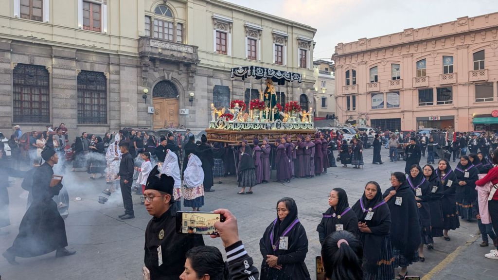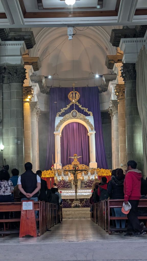 Then that evening whilst walking back from having dinner, I stumbled upon a religious procession, apparently it happens every year, on the 3rd Sunday of Lent (which was today!). It’s called Semana Santa procession, and lots of people walk the streets in traditional religious clothing, with men carrying an altar and effigy of the virgin Mary. There was a marching band following them playing music too, which was very good, echoing in the narrow streets. I phoned Dave and told him I was just near the hotel and if he was well enough, he should drag himself out of bed just briefly to see it, it was worth it, and he just managed to catch it, which was perfect!!