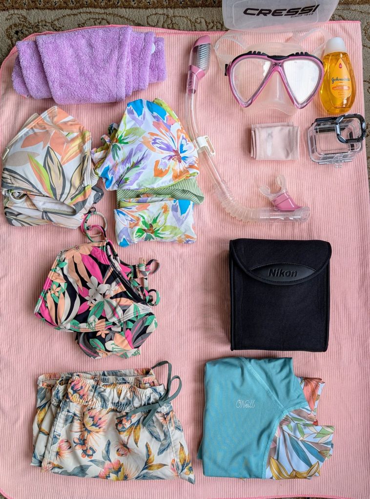 And no I don’t think 3 bikinis is overkill, I took 4 last time, this is a compromise 🤣 and having my own snorkel and mask, I can’t tell you how much of a difference this makes to the enjoyment of snorkeling, as since I have a tiny child’s head (I really do) I can never find a good fitting mask and always leak or fog up. This mask I’ve had for a few years now and is technically a kids one (it’s a ‘young adult’ one by cressi* and fits me PERFECTLY!)