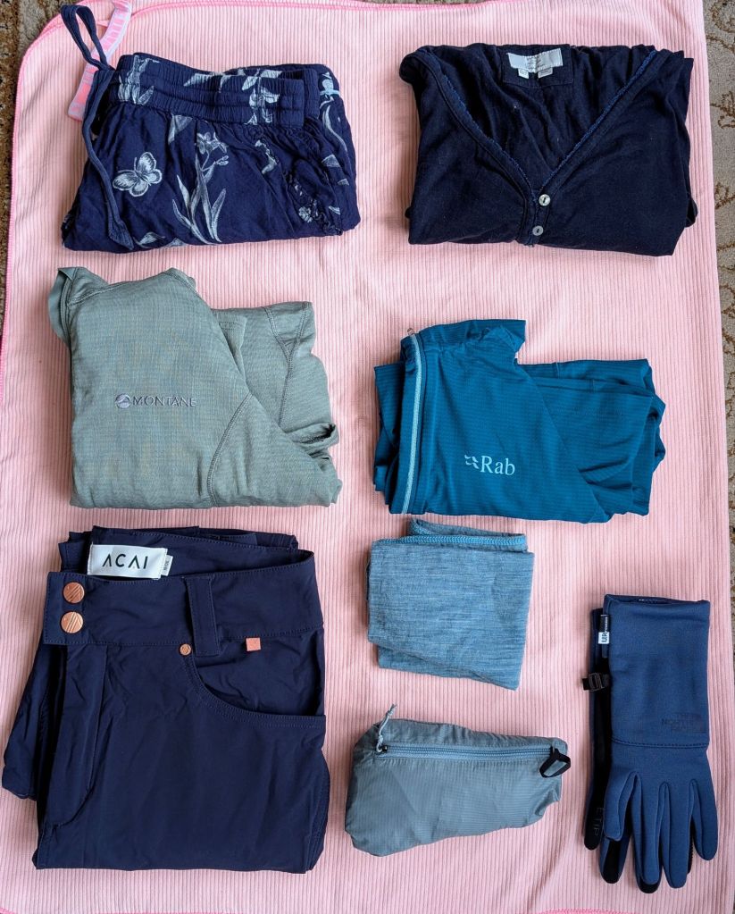 I’ve also gone for the long leggings again, for planes and travel days where A/C could be an issue for cold legs! And my trusty Acai pants which are PERFECT for jungle adventures and can be layered over the leggings for particularly cold high altitude jaunts.